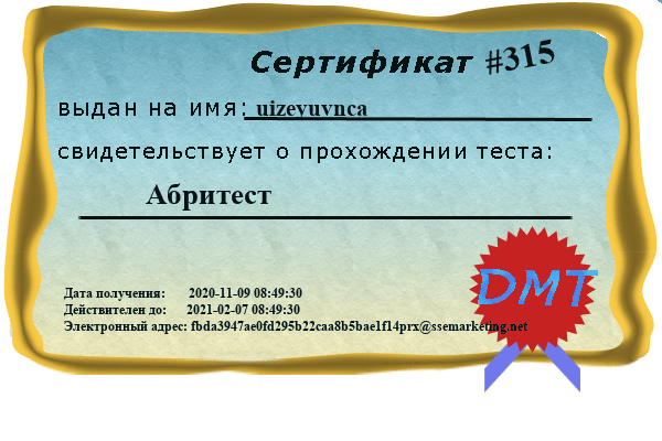 315 uizeyuvnca 9 ноября 2020, 15:49 Просмотр сертификата